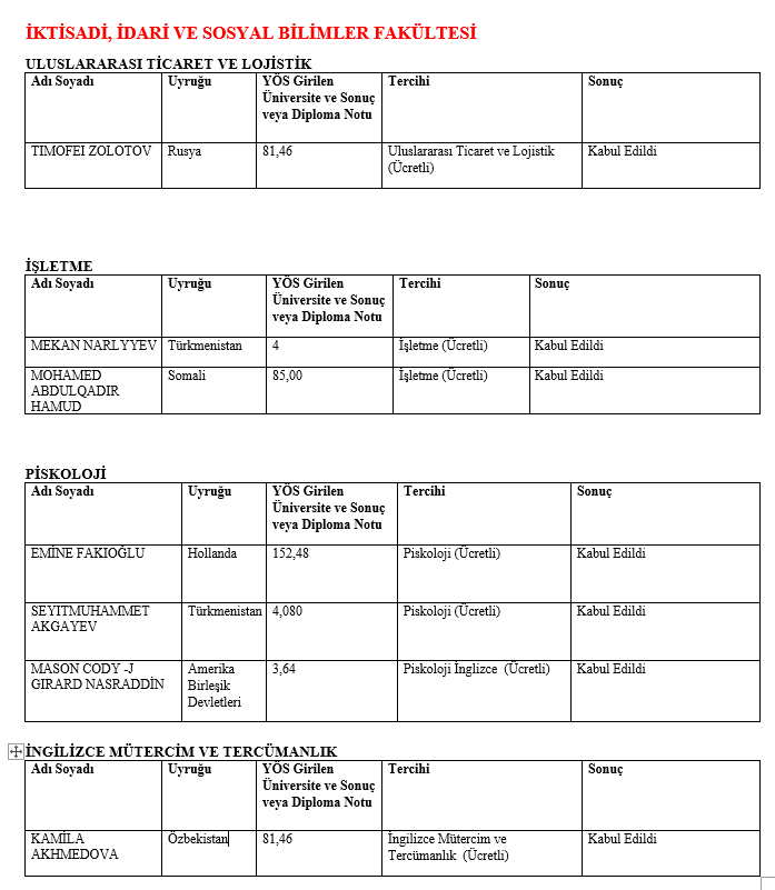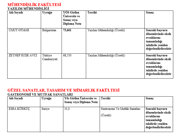 2025-2026 AKADEMİK YILI YURT DIŞI ÖĞRENCİ 1. BAŞVURU SONUÇLARI VE KAYIT İŞLEMLERİ --