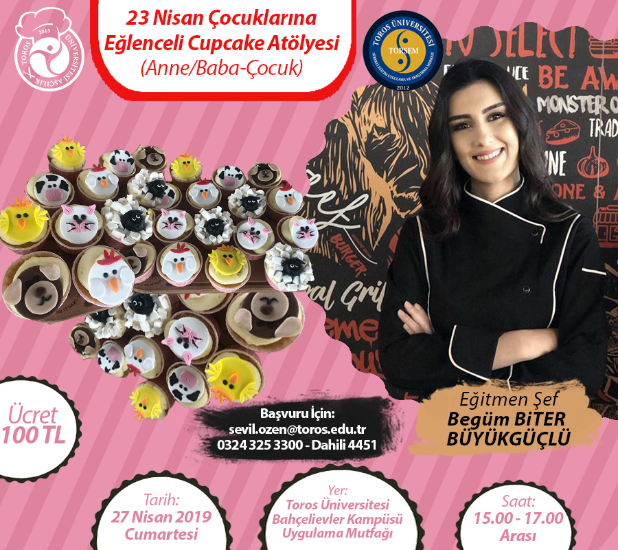 Toros Üniversitesi Sürekli Eğitim Uygulama ve Araştırma Merkezi (TORSEM) tarafından "23 Nisan Çocuklarına Eğlenceli Cupcake Atölyesi" eğitimi düzenlenecektir.