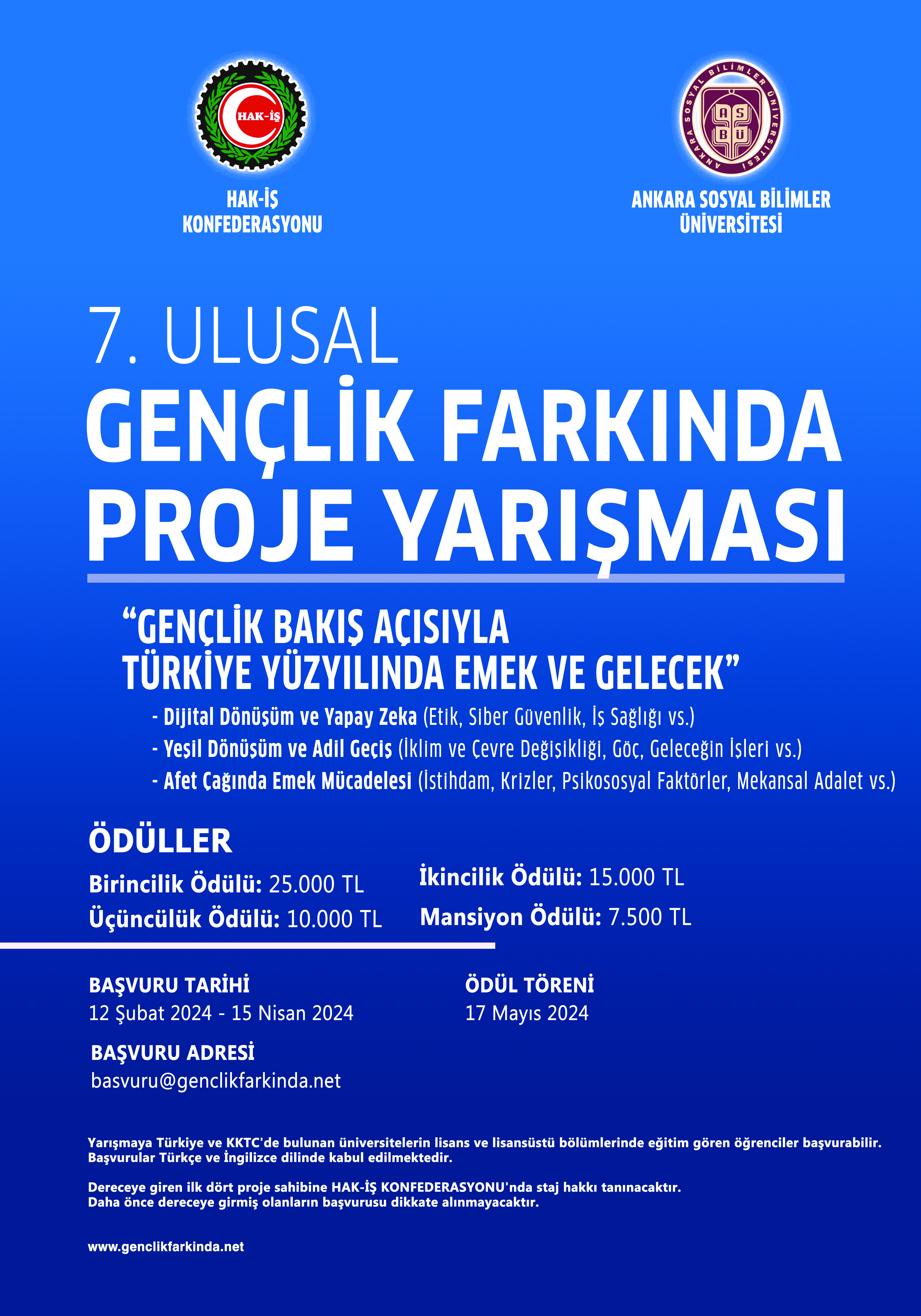ANKARA SOSYAL BİLİMLER ÜNİVERSİTESİ'nin "7. Gençlik Farkında Proje Yarışması" Konulu Duyuru Yazısı