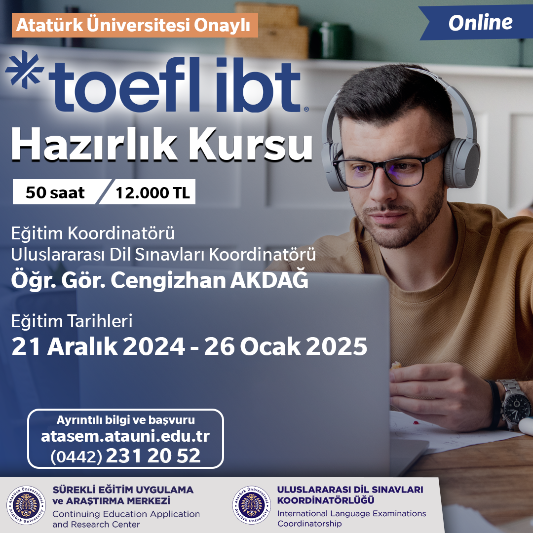ATATÜRK ÜNİVERSİTESİ: 'TOEFL IBT ve IELTS Sınavlarına Hazırlık Kursu' Konulu Duyuru Yazısı