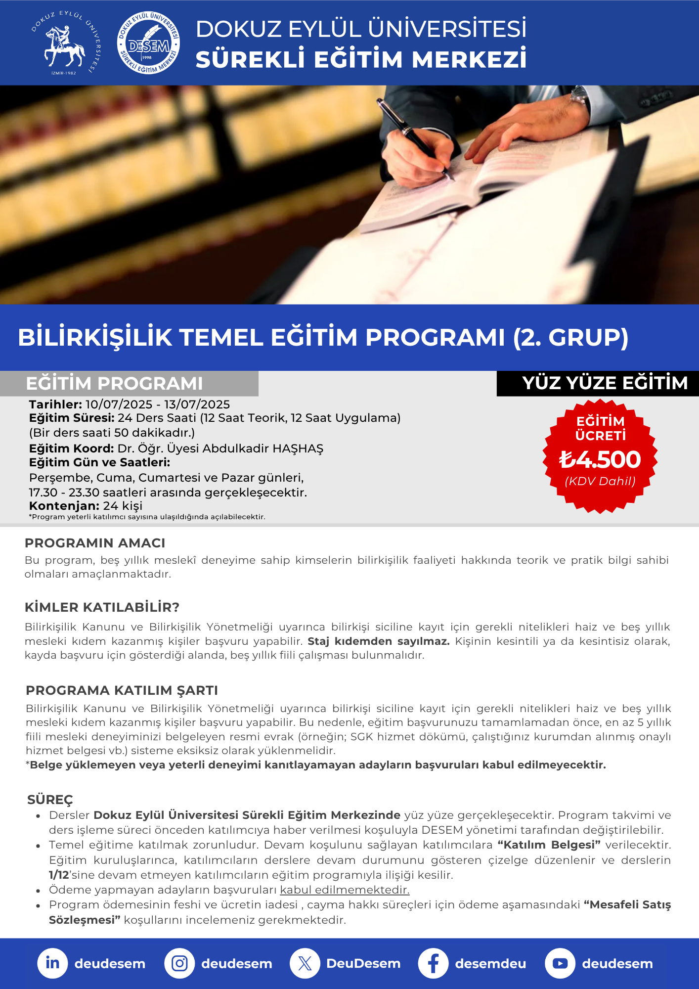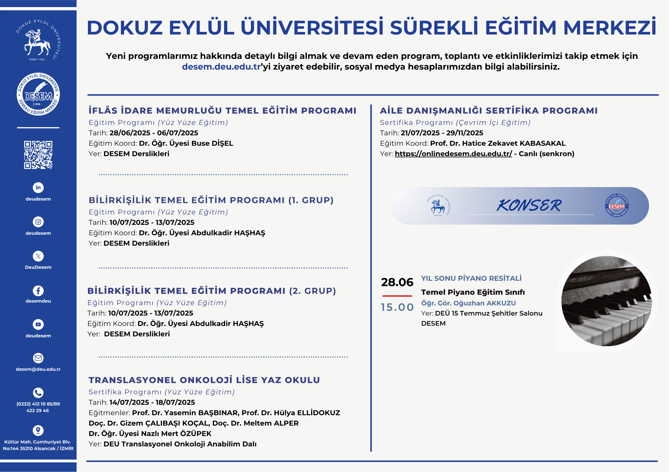 DOKUZ EYLÜL ÜNIVERSITESI REKTÖRLÜGÜ-Dokuz Eylül Üniversitesi Sürekli Eğitim Merkezi Programları Duyurusu