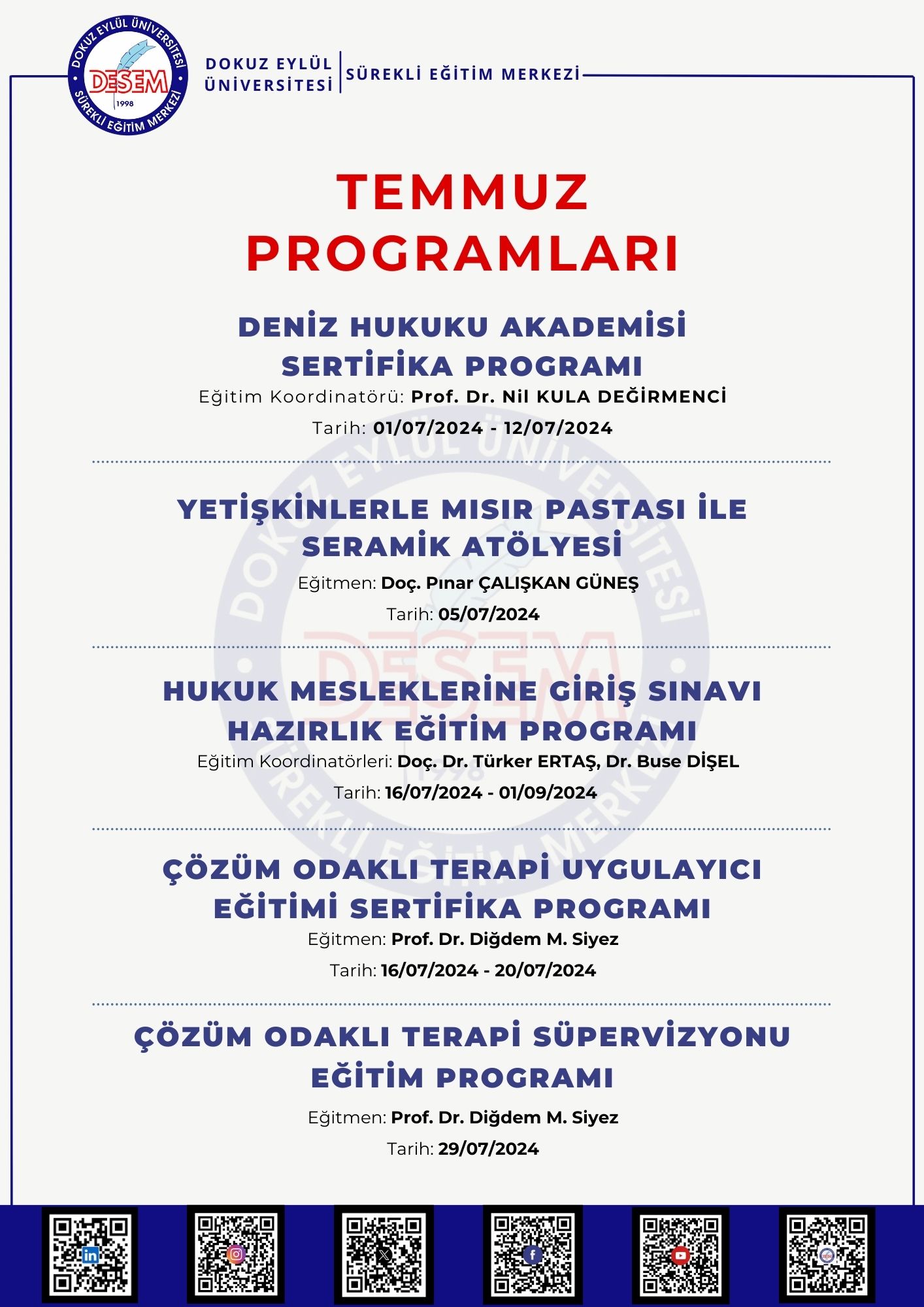 DOKUZ EYLÜL ÜNİVERSİTESİ'nin "DESEM 2024 Yılı Temmuz Program Duyuruları" Konulu Duyuru Yazısı