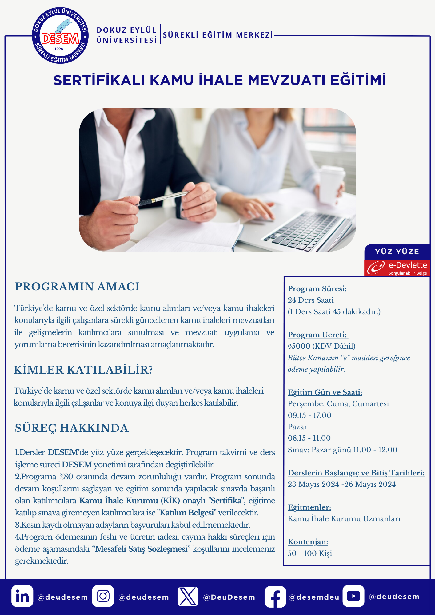 DOKUZ EYLÜL ÜNİVERSİTESİ'nin "Sertifikalı Kamu İhale Mevzuatı Eğitimi" Konulu Duyuru Yazısı