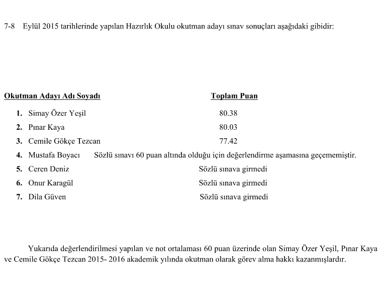 Hazırlık Okulu okutman adayı sınav sonuçları