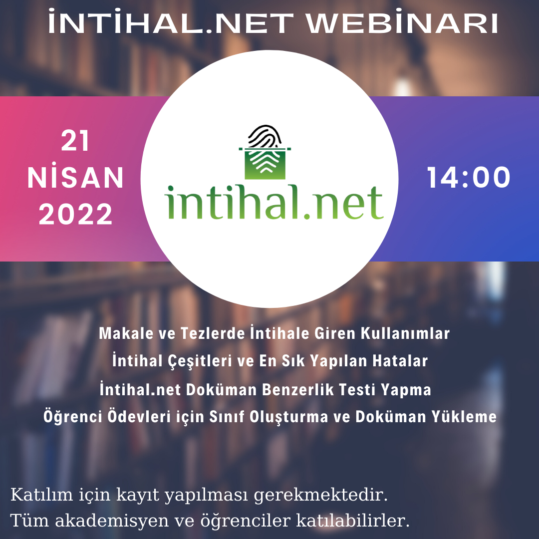 İntihal.net Türkiye geneli webinarlarına başlıyor.Nisan ve Mayıs ayı içerisinde tüm akademisyen ve öğrencilerin katılımıyla webinarlar gerçekleşecektir.