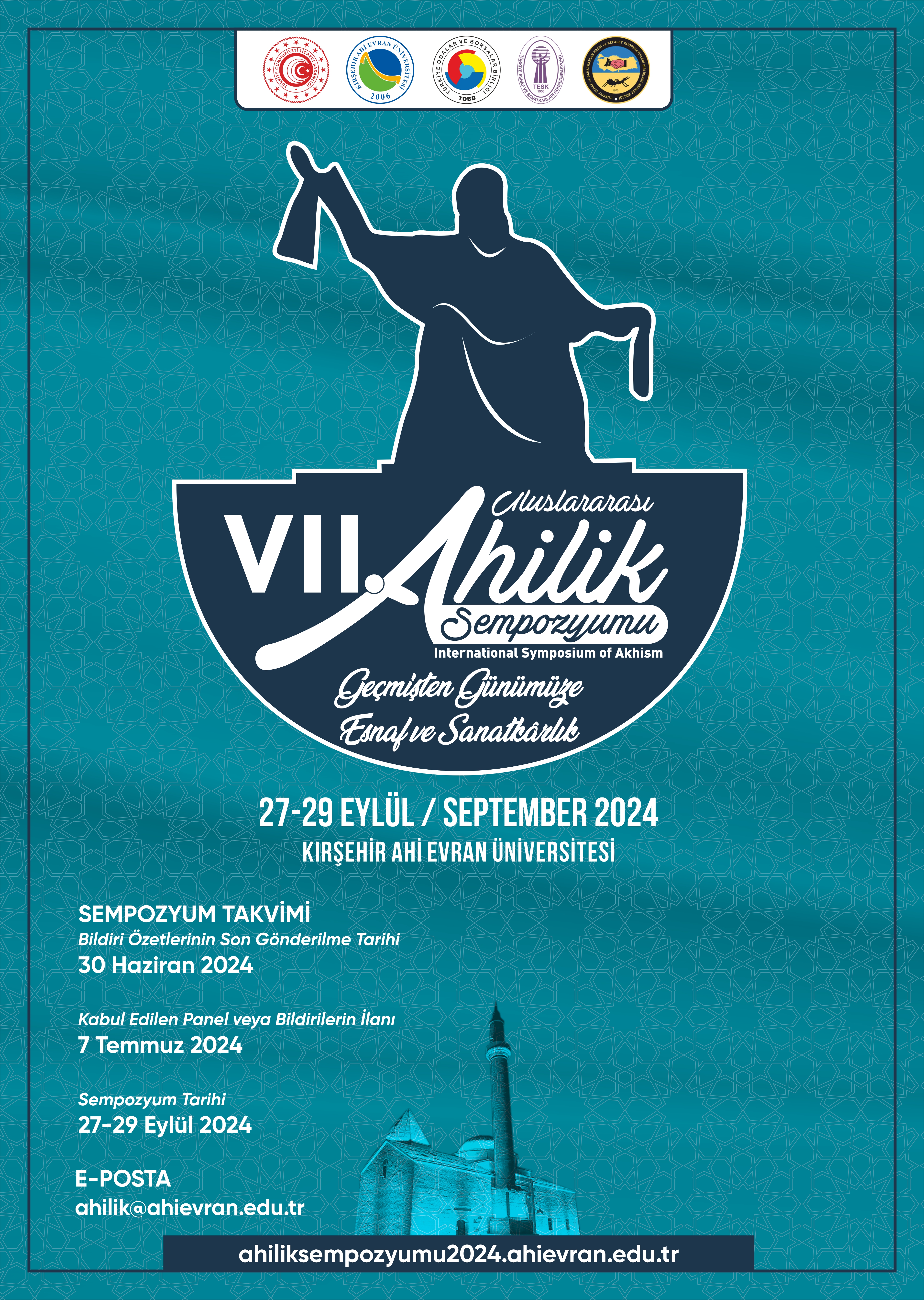 KIRŞEHİR AHİ EVRAN ÜNİVERSİTESİ'nin "VII. Uluslararası Ahilik Sempozyumu'na Davet" Konulu Duyuru Yazısı