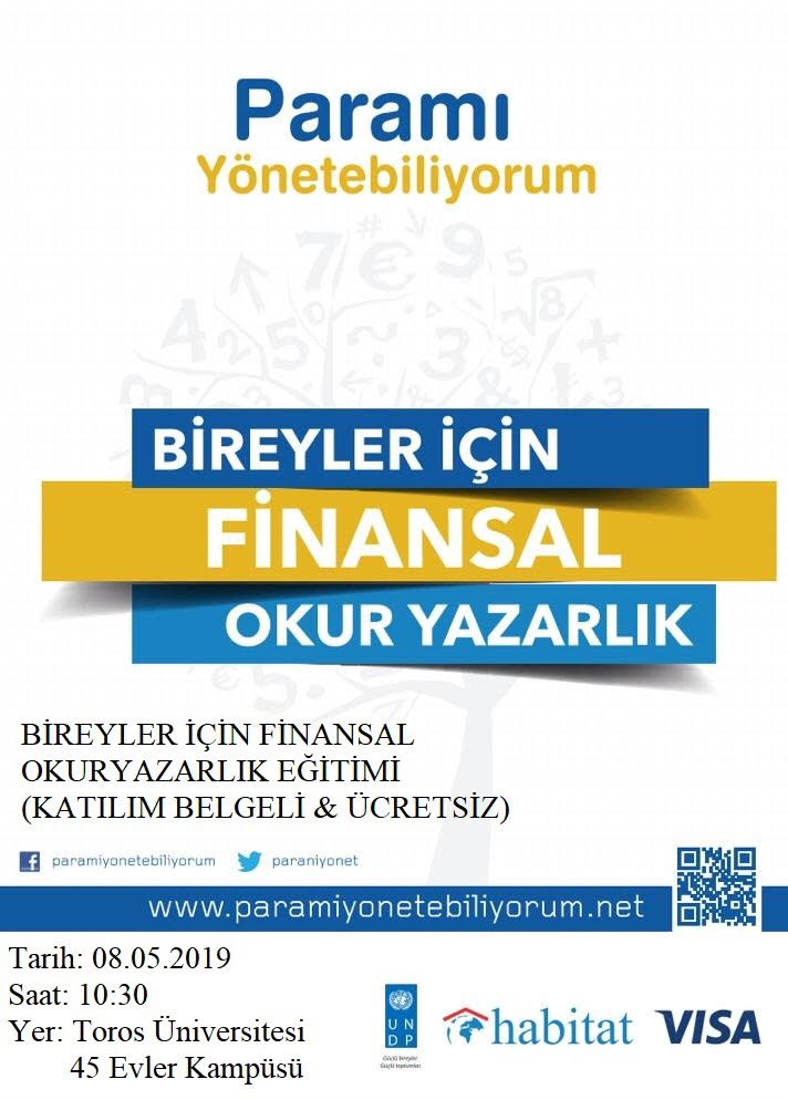 08 Mayıs 2019 tarihinde saat:10:30'da Üniversitemiz 45 Evler Konferans Salonunda HABİTAT derneği tarafından "Paramı Yönetebiliyorum Bireyler İçin Finansal Okur Yazarlık" eğitimi düzenlenecektir.