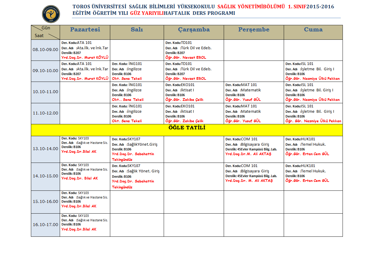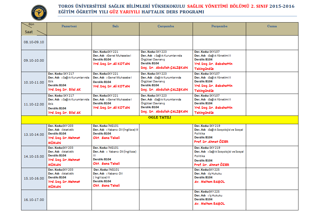 SAĞLIK BİLİMLERİ YÜKSEKOKULU DERS PROGRAMLARI