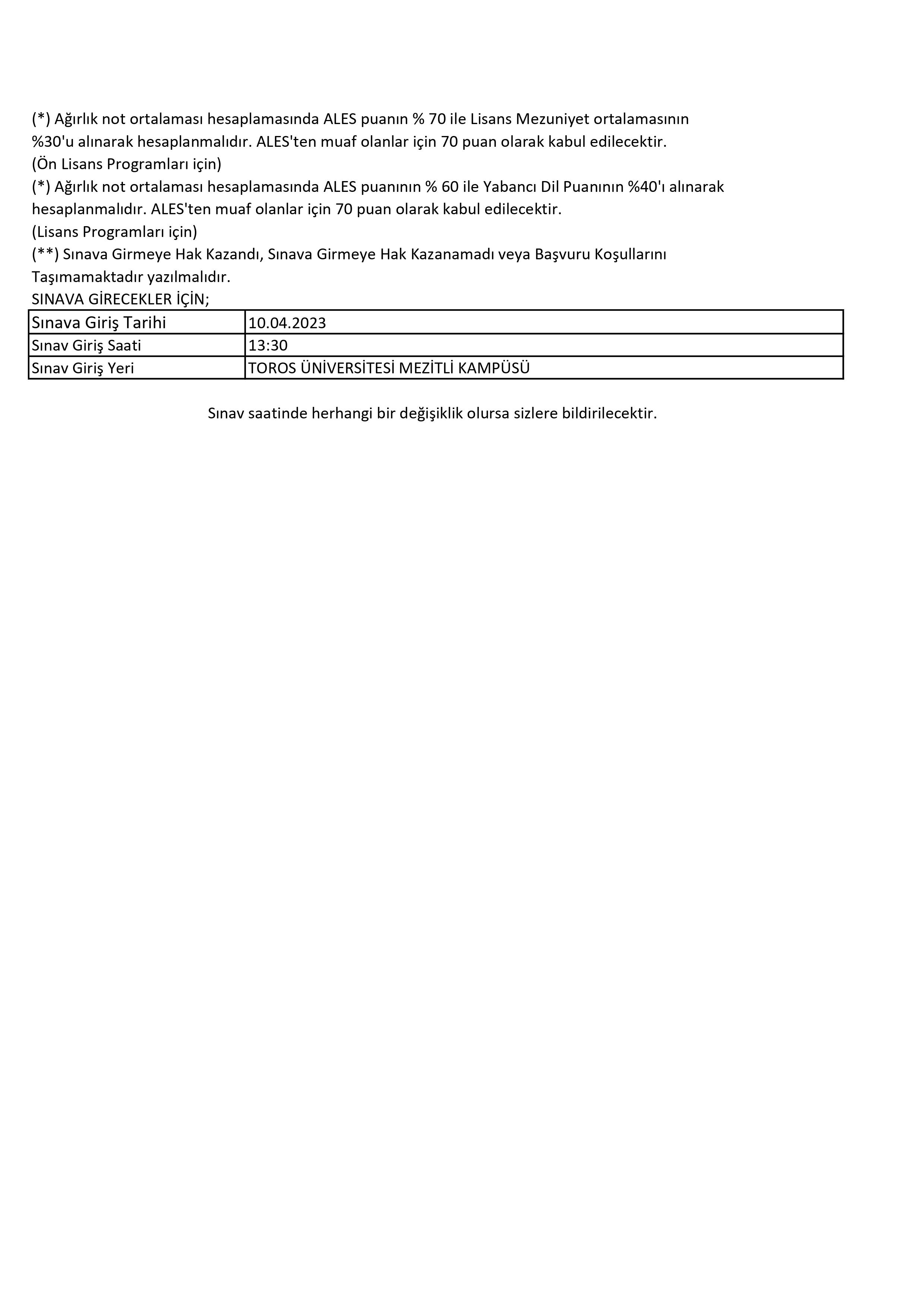 05.04.2023 TOROS ÜNİVERSİTESİ MESLEK YÜKSEKOKULU İNŞAAT BÖLÜMÜ/İNŞAAT TEKNOLOJİLERİ PROGRAMI ÖĞRETİM GÖREVLİSİ ÖN DEĞERLENDİRME DUYURUSU (18 MART 2023 TARİHLİ VE 32136 SAYILI RESMİ GAZETE)