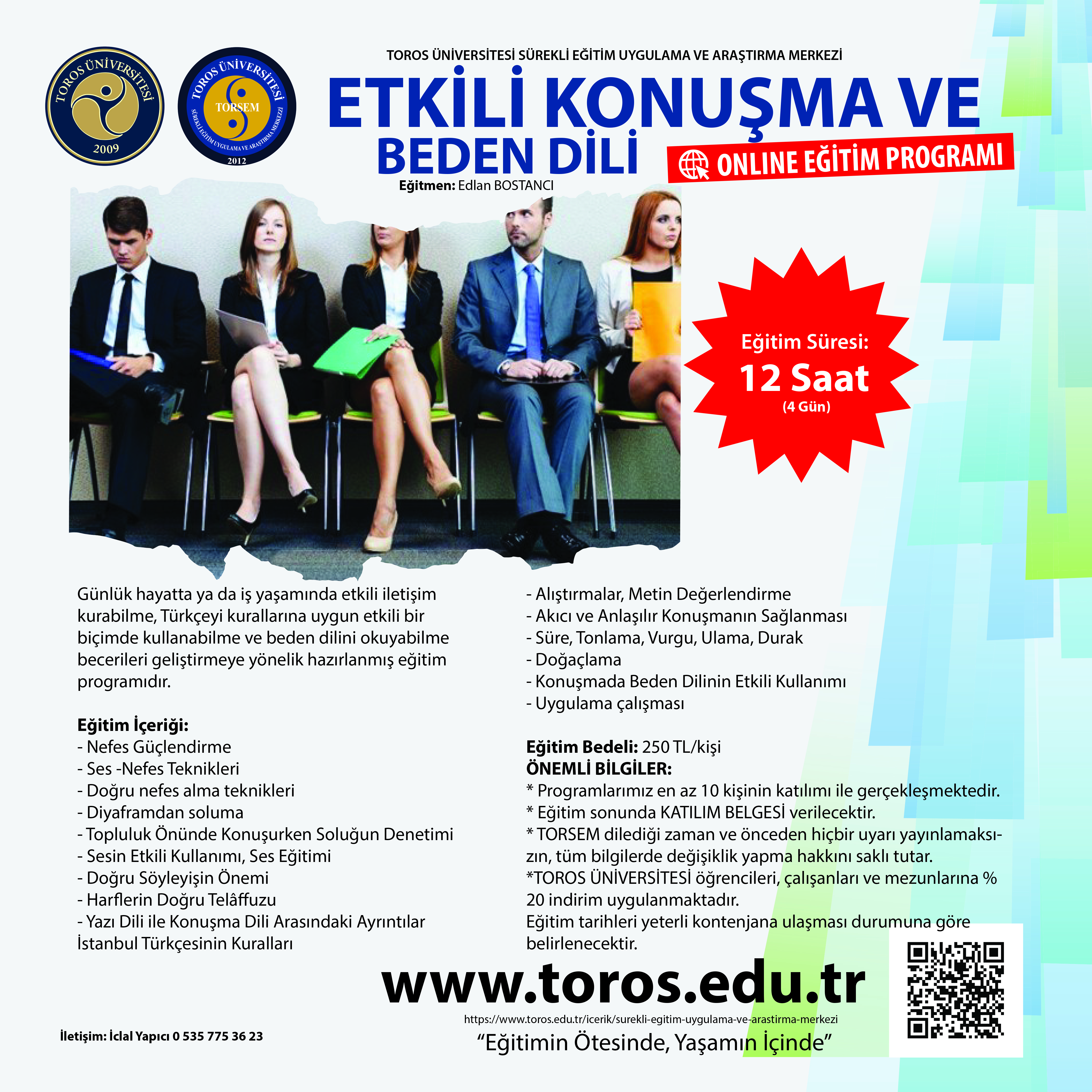 TORSEM ETKİLİ KONUŞMA VE BEDEN DİLİ EĞİTİMİ BAŞVURULARI BAŞLADI...