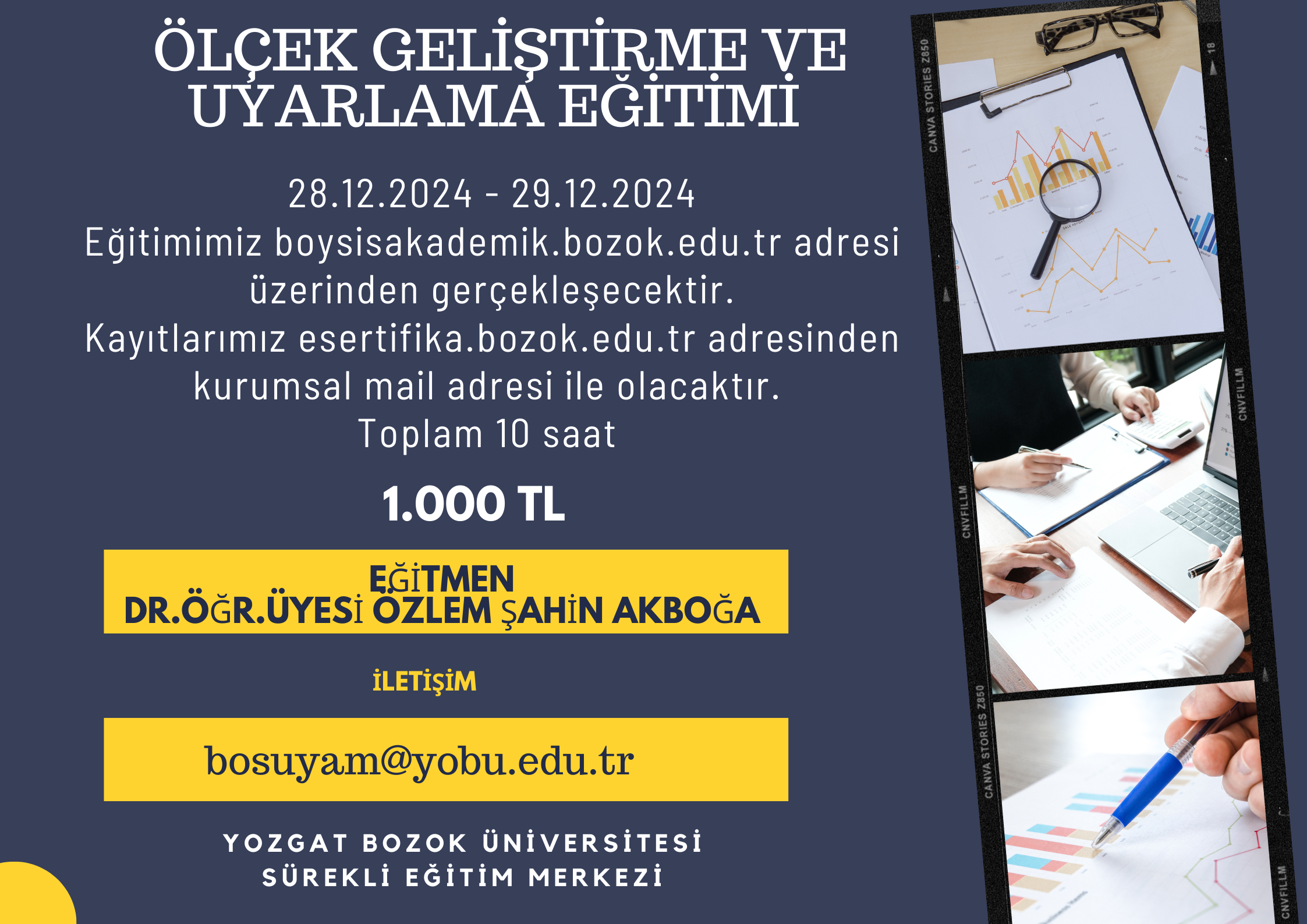 YOZGAT BOZOK ÜNİVERSİTESİ: 'Ölçek Geliştirme ve Uyarlama Eğitimi Kursu' Konulu Duyuru Yazısı