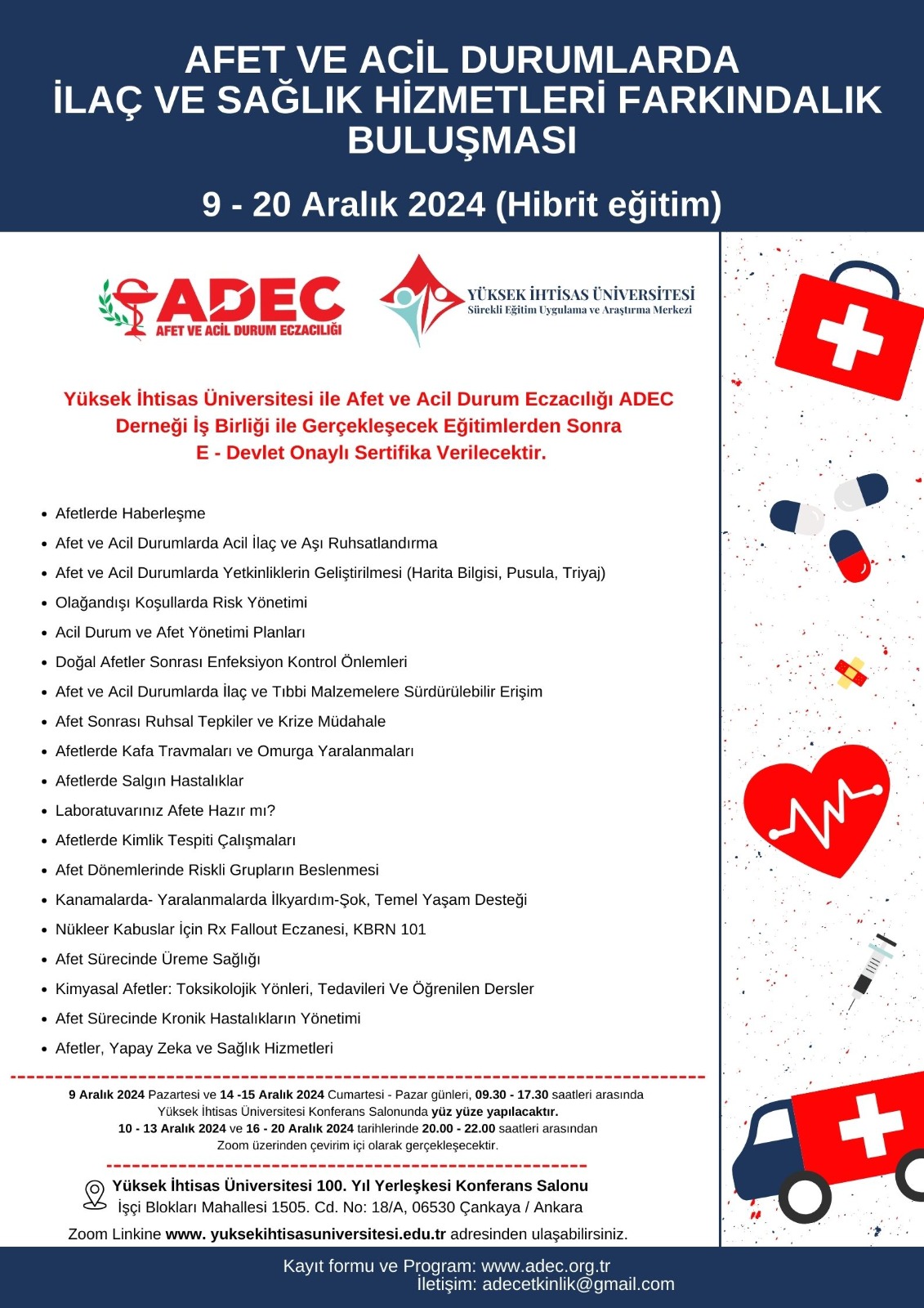 YÜKSEK İHTİSAS ÜNİVERSİTESİ: 'Afet ve Acil Durumlarda İlaç ve Sağlık Hizmetleri Farkındalık Buluşması' Konulu Duyuru Yazısı