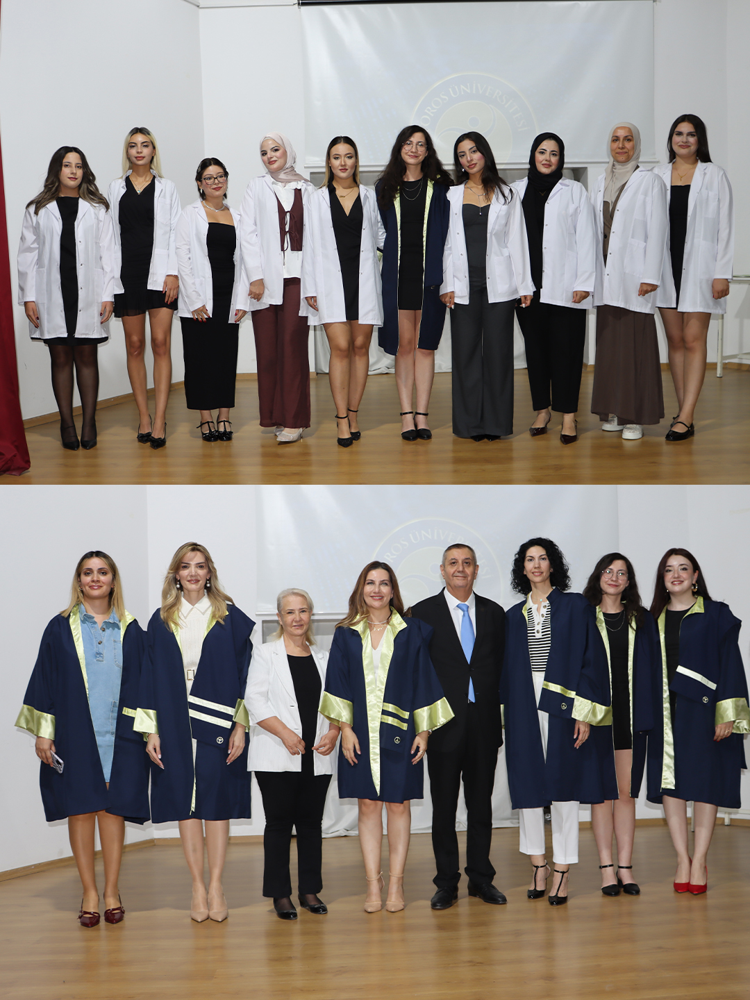 Toros Üniversitesi Sağlık Bilimleri Fakültesi Beslenme ve Diyetetik Bölümü 2. ve 3. sınıf öğrencileri, meslek yaşamlarına ilk adımı simgeleyen “Beyaz Ceket Giyme Töreni” ile buluştu. Tören, 45 Evler Kampüsü Konferans Salonu’nda büyük bir coşkuyla gerçekleştirildi.