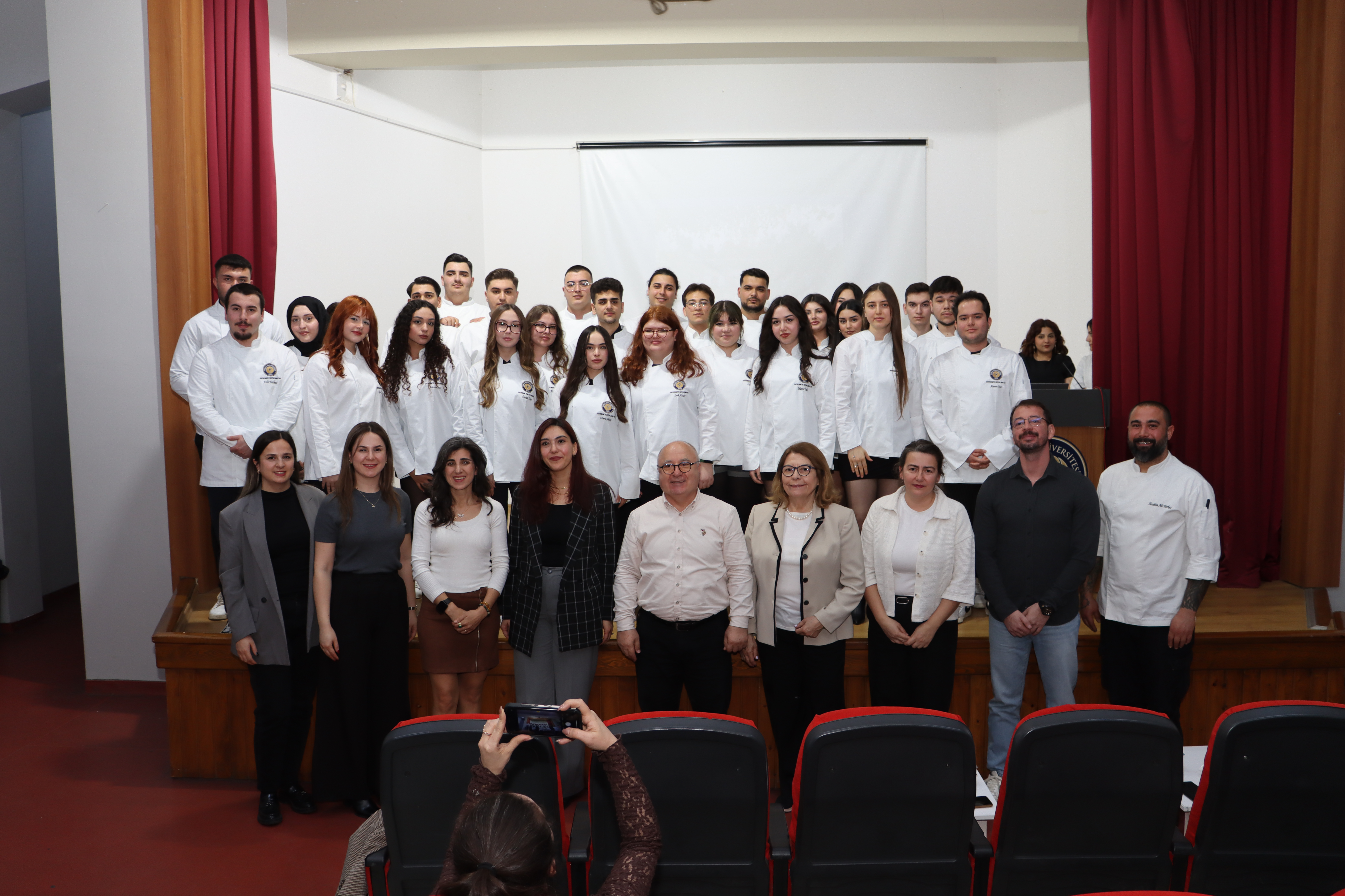 Konuşmaların ardından öğrenciler sahneye davet edilerek bölüm akademisyenleri ve eğitmen şef tarafından şef ceketleri giydirildi. Alkışlar eşliğinde gerçekleşen törende öğrenciler, mesleki kimliklerinin simgesi olan ceketlerini gururla taşıdı.