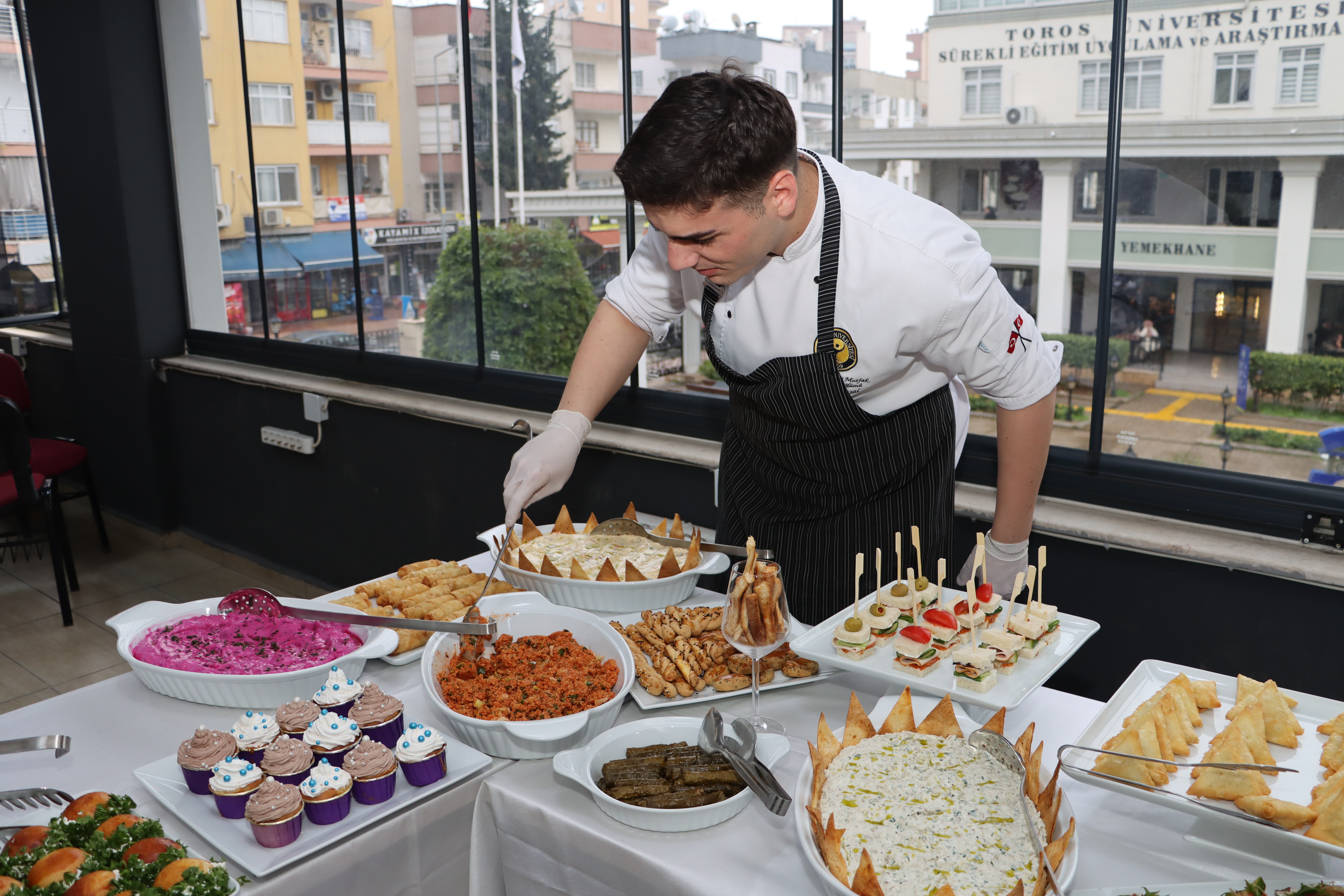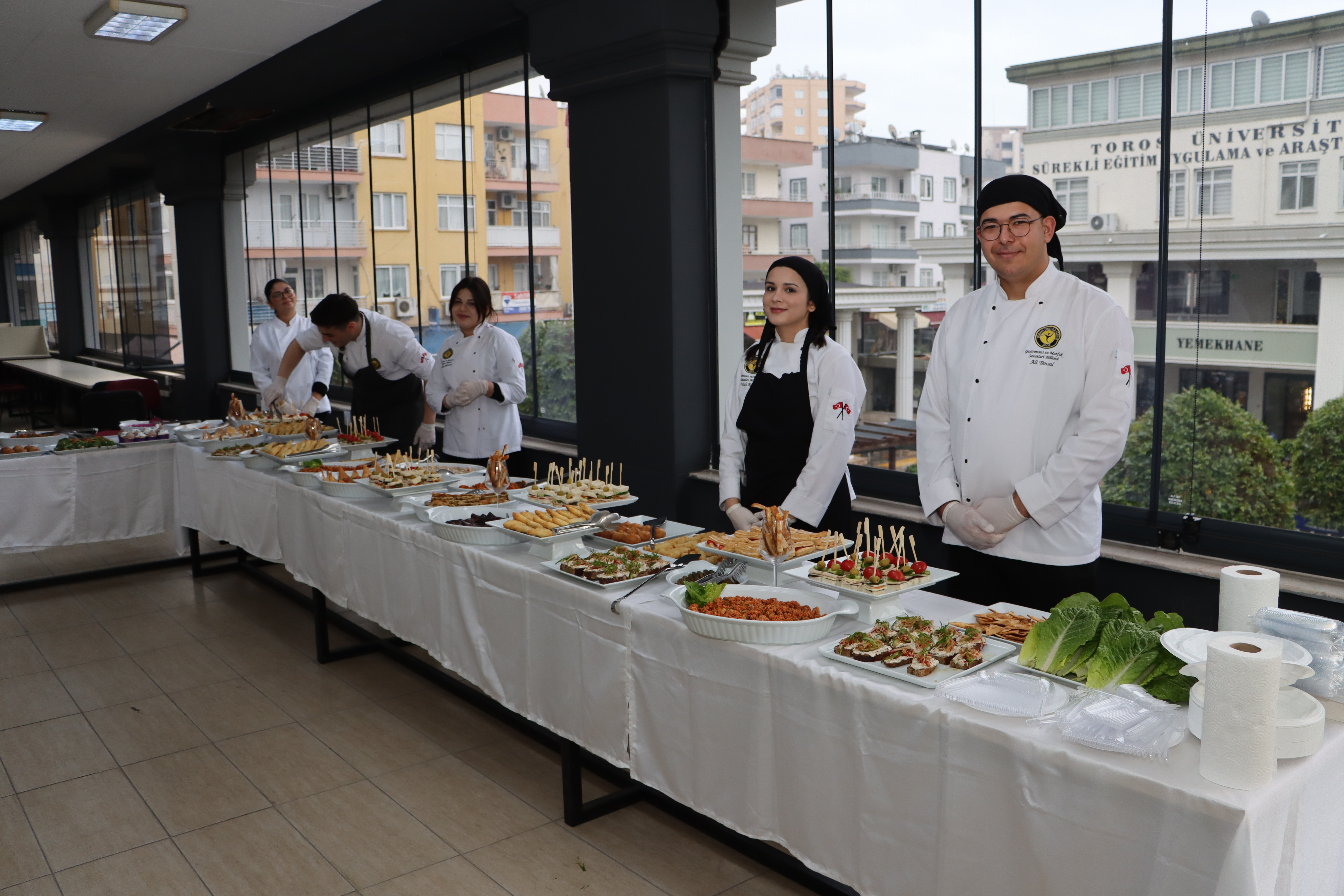 Etkinlik sonunda ise Gastronomi ve Mutfak Sanatları Bölümü öğrencileri tarafından hazırlanan çeşitli yiyecekler katılımcılara ikram edildi. Uygulama mutfaklarında özenle hazırlanan lezzetler davetlilerden tam not aldı.