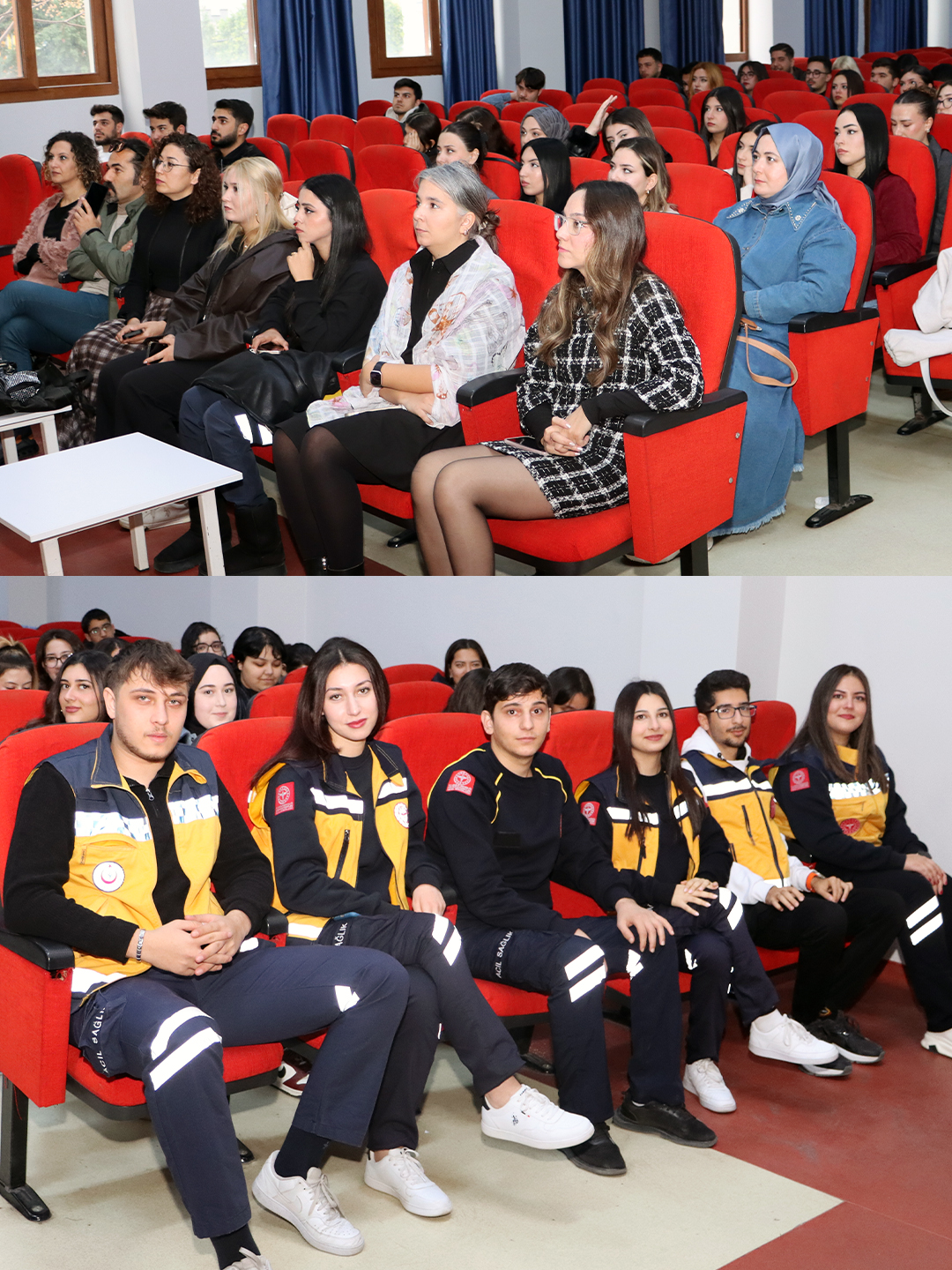 Programın öğleden sonraki bölümünde ise Paramedik Habip GOSTAK tarafından bir sunum yapıldı. Sunumda, paramediklik mesleğinin sahadaki uygulamaları, mesleki deneyimler ve acil sağlık hizmetlerinde karşılaşılan vaka örnekleri öğrencilerle paylaşıldı.