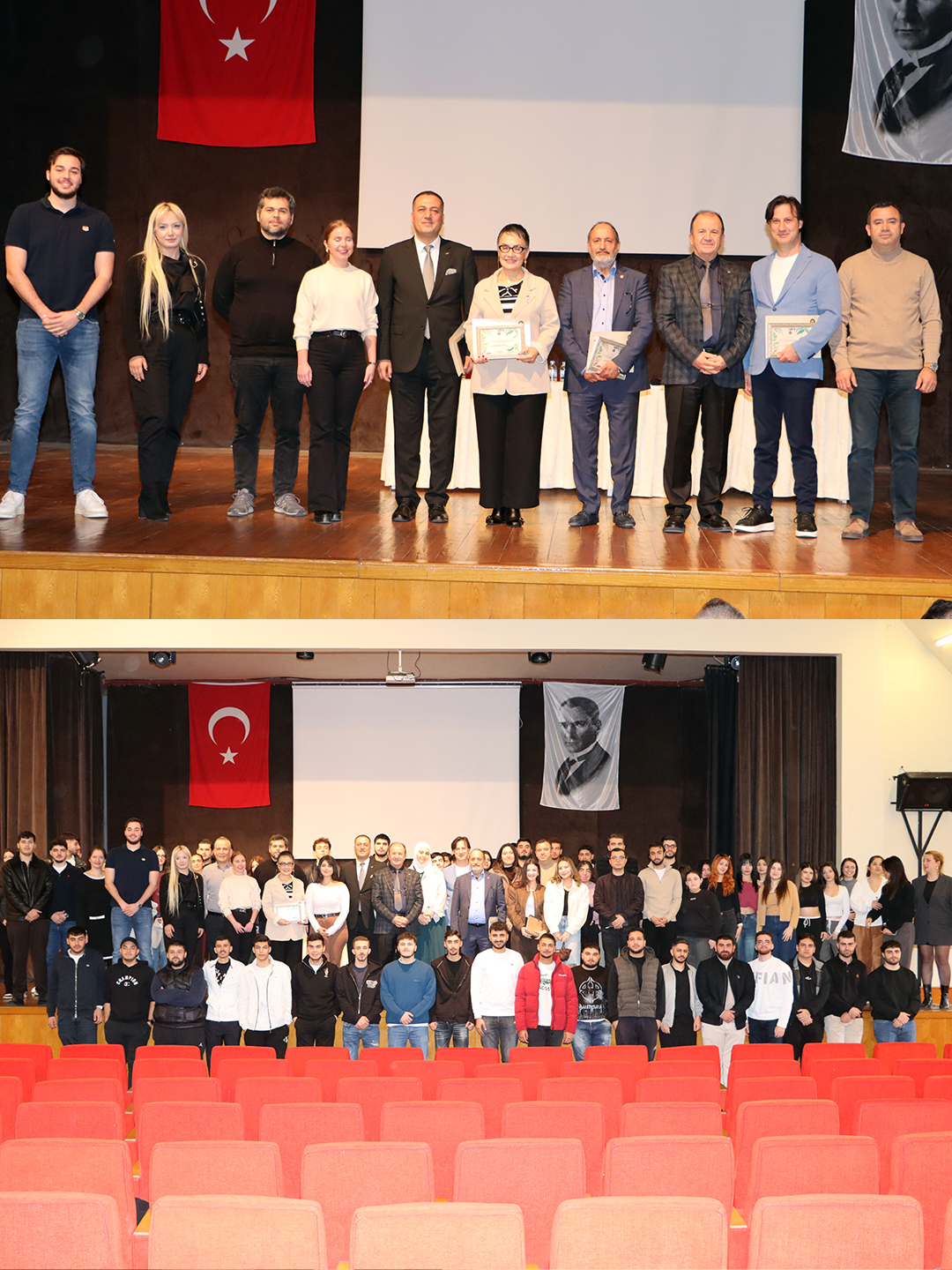 Soru-cevap bölümünde öğrenciler sektör temsilcilerine kariyer planlaması, staj imkanları ve uluslararası ticarette güncel gelişmeler hakkında sorular yöneltti. Etkinlik sonunda konuşmacılara teşekkür belgeleri takdim edildi ve toplu fotoğraf çekimi gerçekleştirildi.