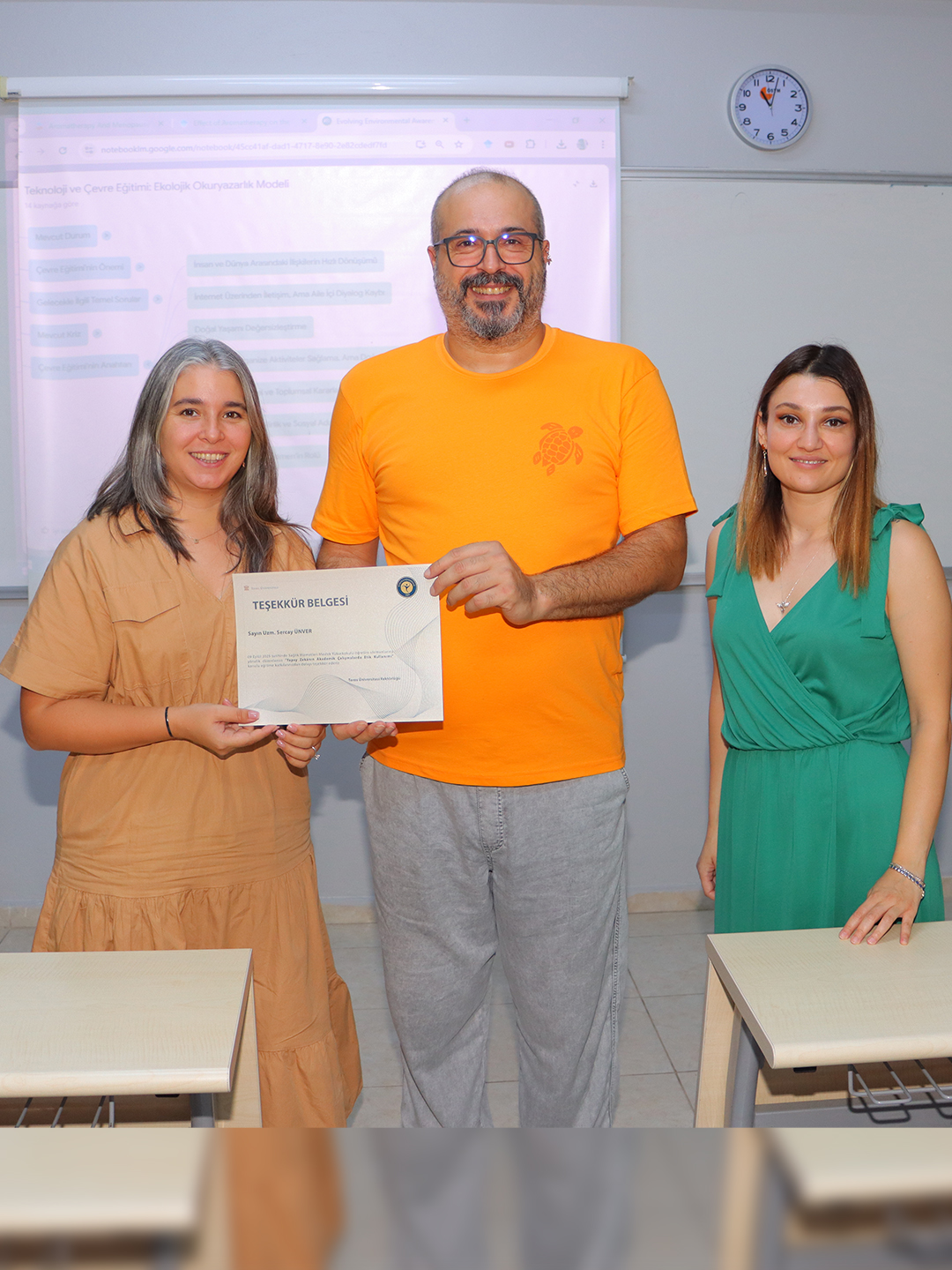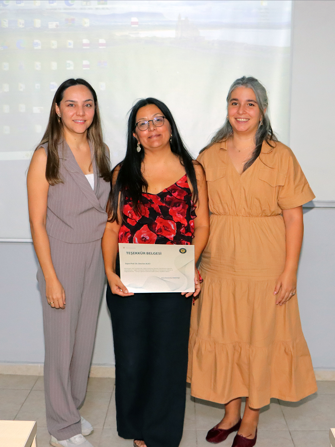 Eğitim programının sonunda, katkılarından dolayı tüm konuşmacılara Sağlık Hizmetleri Meslek Yüksekokulu Müdürü Öğr. Üyesi Dilan Sarpkaya tarafından teşekkür belgeleri takdim edildi.