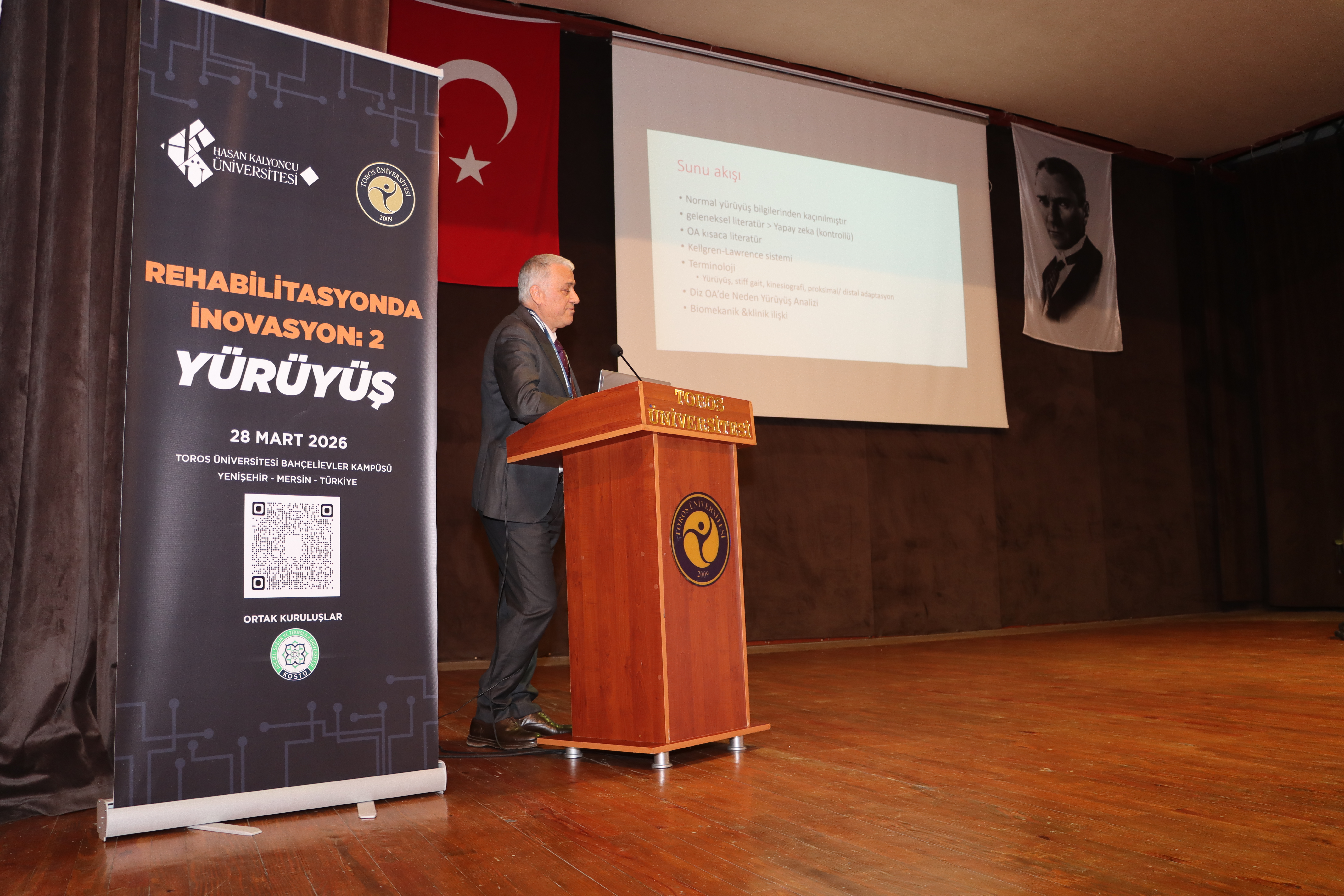 Toros Üniversitesi ve Hasan Kalyoncu Üniversitesi iş birliğiyle düzenlenen "Rehabilitasyonda İnovasyon-2: Yürüyüş" sempozyumu, 28 Mart 2026 tarihinde Bahçelievler Kampüsü'nde akademik dünyayı bir araya getirdi. 5 ana oturum ve sözel sunumlardan oluşan programda, klinik uygulamalardan sanal gerçeklik destekli tedavilere kadar geniş bir yelpaze ele alındı.