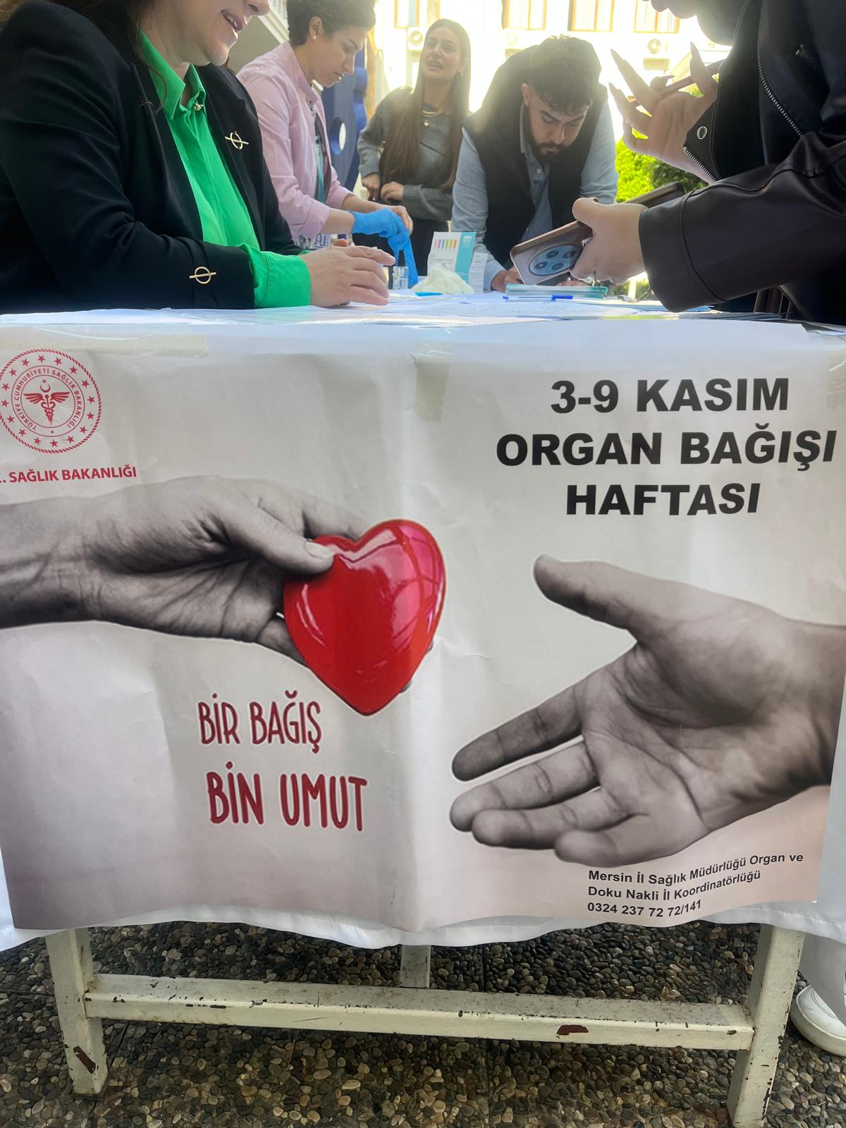 Organ Bağışı Haftası dolayısıyla gerçekleştirilen ikinci etkinlikte, vatandaşlara organ bağışının önemi konusunda bilgilendirme yapıldı ve gönüllü bağışçı kayıtları alındı. Toros Üniversitesi SHMYO ile Yenişehir İlçe Sağlık Müdürlüğü'nün iş birliğiyle düzenlenen bu anlamlı organizasyon, "Bir organ, bir hayat" anlayışıyla öğrencilerde farkındalık oluşturdu.