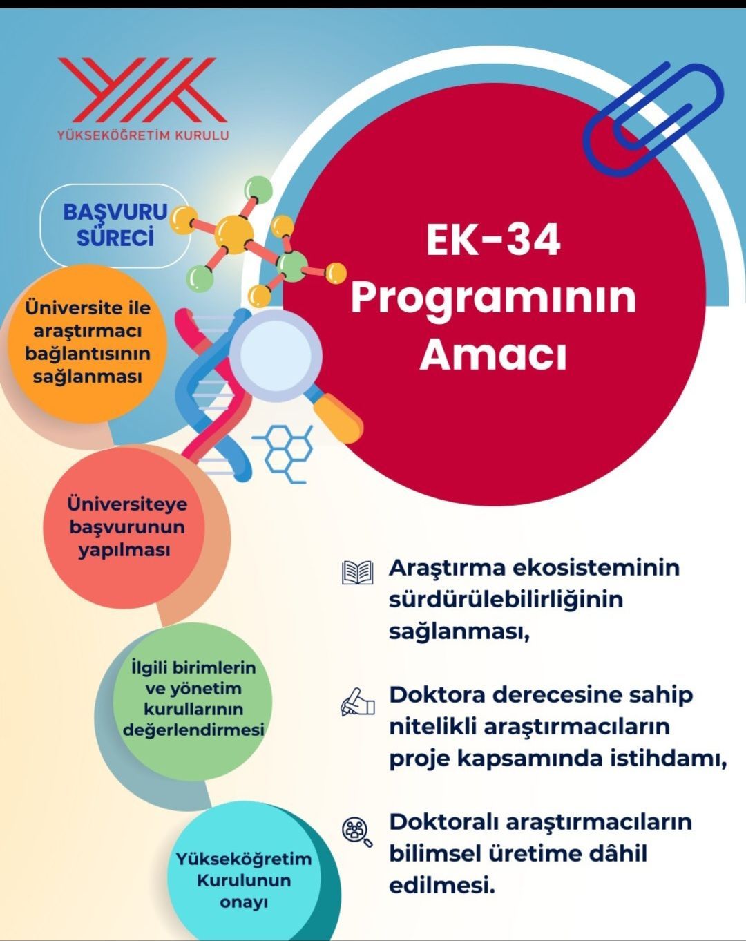 Yükseköğretim Kurulu (YÖK) tarafından yürütülen EK-34 (Doktoralı Genç Araştırmacılar İçin İstihdam Projesi) kapsamında, üniversitemizde yürüttüğünüz Ar-Ge ve tasarım projelerinde görevlendirilmek üzere doktoralı araştırmacı istihdam etme imkanı bulunmaktadır.