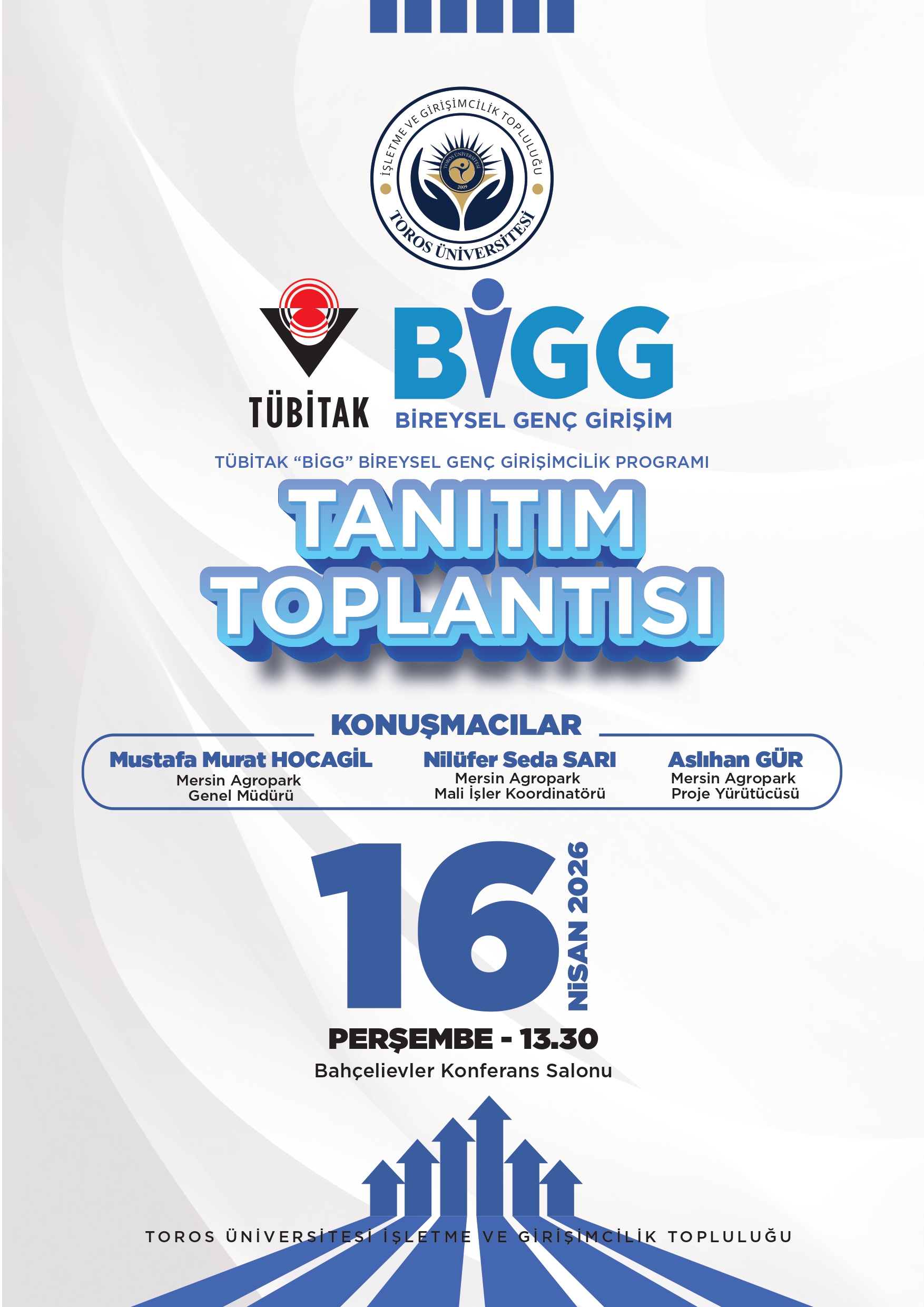 Toros Üniversitesi İşletme ve Girişimcilik Topluluğu tarafından düzenlenen TÜBİTAK “BİGG” Bireysel Genç Girişimcilik Programı Tanıtım Toplantısı, girişimcilik ekosistemine ilgi duyan tüm öğrencilerimizi bir araya getiriyor.