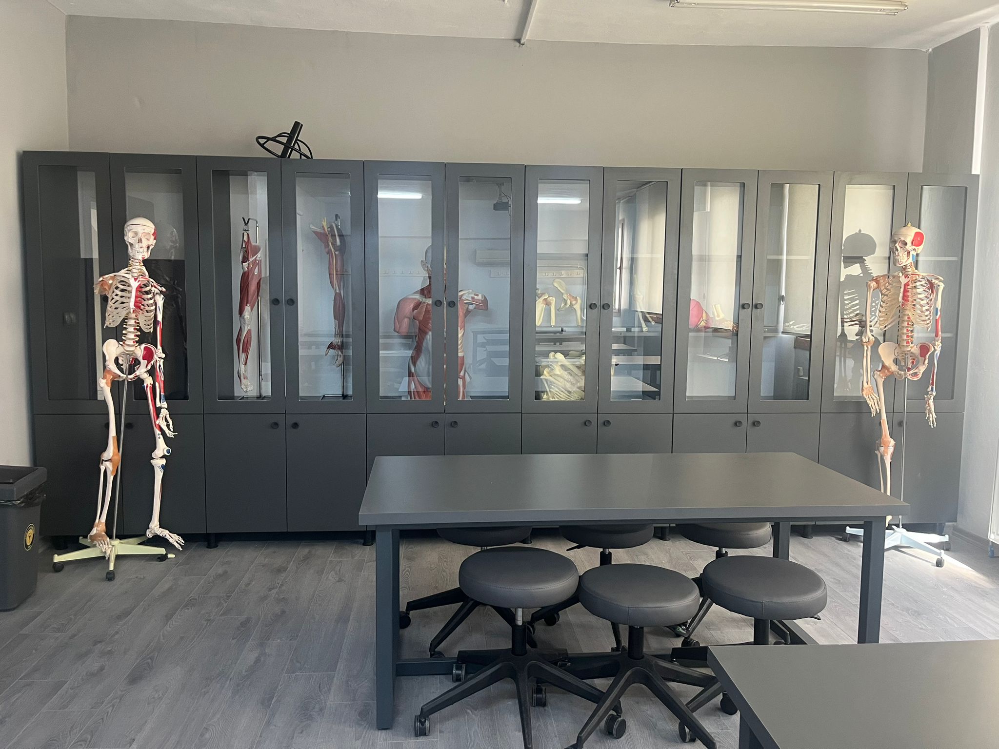 Anatomi Laboratuvarı, öğrencilerin derslerde edindikleri teorik bilgileri görsel materyaller üzerinden pekiştirmelerine, yapıları karşılaştırmalı olarak incelemelerine ve anatomiye ilişkin mekânsal farkındalık geliştirmelerine imkân sunmaktadır. Laboratuvar ortamı, özellikle fizyoterapi ve rehabilitasyon eğitiminde büyük önem taşıyan vücut yapılarının yerini, ilişkisini ve fonksiyonel önemini doğru kavrama becerisini desteklemektedir.
