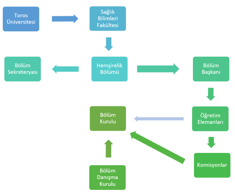 Hemşirelik Bölümünün Üniversite ve bağlı olduğu Fakülte ile ilişkili organizasyon şeması aşağıda verilmiştir.